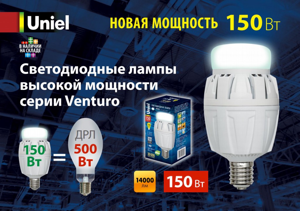 21 Дек Cветодиодные лампы Venturo 150 Вт для освещения производственных или складских помещений с высокими пролетами