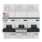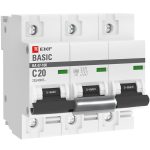 Автоматический выключатель 3P 20А (C) 10kA ВА 47-100 EKF Basic