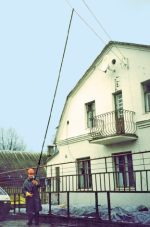 ◄ Рис. 2. Измерение тока на вводе в дом с помощью индикатора тока воздушной линии ИТВЛ-0,4 и электроизолирующей штанги ШЭУ®