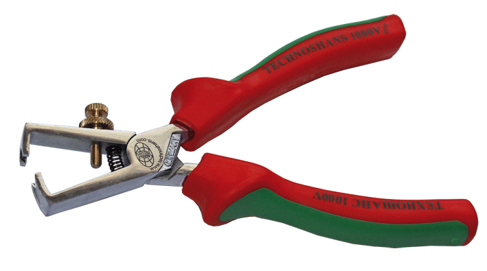 Для изменения просвета между губками в соответствии с сечением провода клещи снабжены латунными винтом и контргайкой с противоскользящей накаткой. Обеспечивают снятие изоляции с проводов диаметром до 5 мм без повреждения электропроводной жилы.