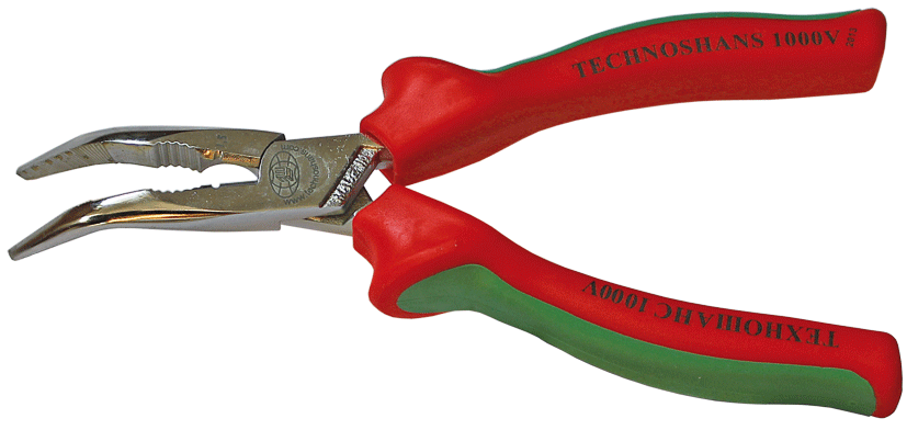 Плоскогубцы с полукруглыми губками (узкогубцы) с электроизолирующими рукоятками, изогнутые под углом 45°, 170 мм