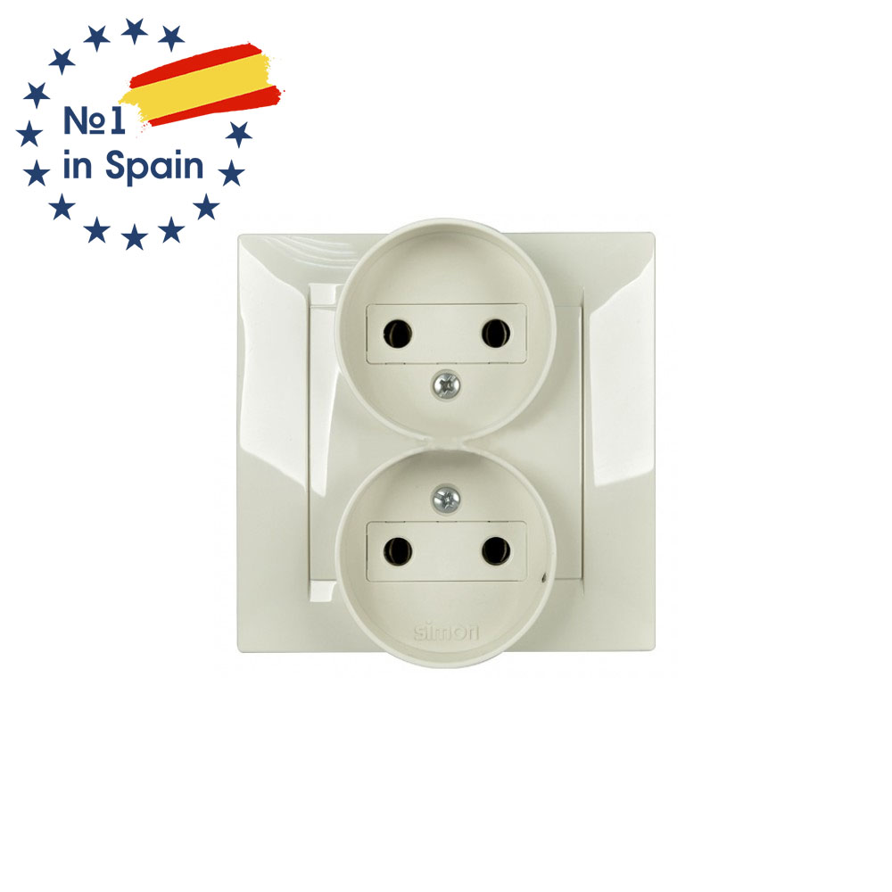 Сдвоенная розетка 2Р без заземления, слоновая кость