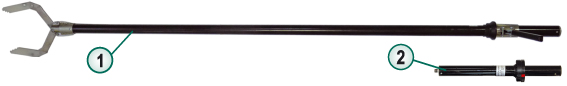 Штанга-манипулятор 1 содержит два рычага захвата с диэлектрической приводной тягой, размещенной в стеклопластиковом корпусе, и приводную рукоятку, размещенную в основании корпуса. Корпус ШЭМ-35 снабжен съемной штангой-удлинителем 2 со встроенным сигнализатором напряжения.