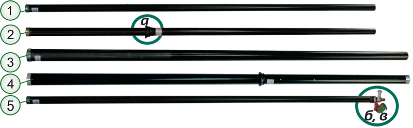 Штанга дополнительная ДЗКФ с курсовым электроизолированным фонарем VONATEXтм для многозвенных штанг ШЭУ® снабжена резьбовым наконечником (б) длиной 40 мм и курсовым электроизолированным фонарем VONATEXтм с неизолированным держателем, который закрепляется на резьбовом наконечнике с помощью насадки для оперативных переключений (в).